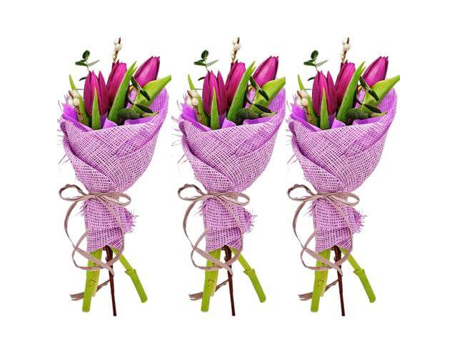 De Martisor 3 buchetele cu 3 lalele si eucalipt